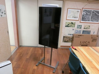多目的ホール入り口にメッセージボードを設置するためTV台を製作した。