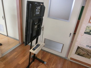 多目的ホール入り口にメッセージボードを設置するためTV台を製作した。
